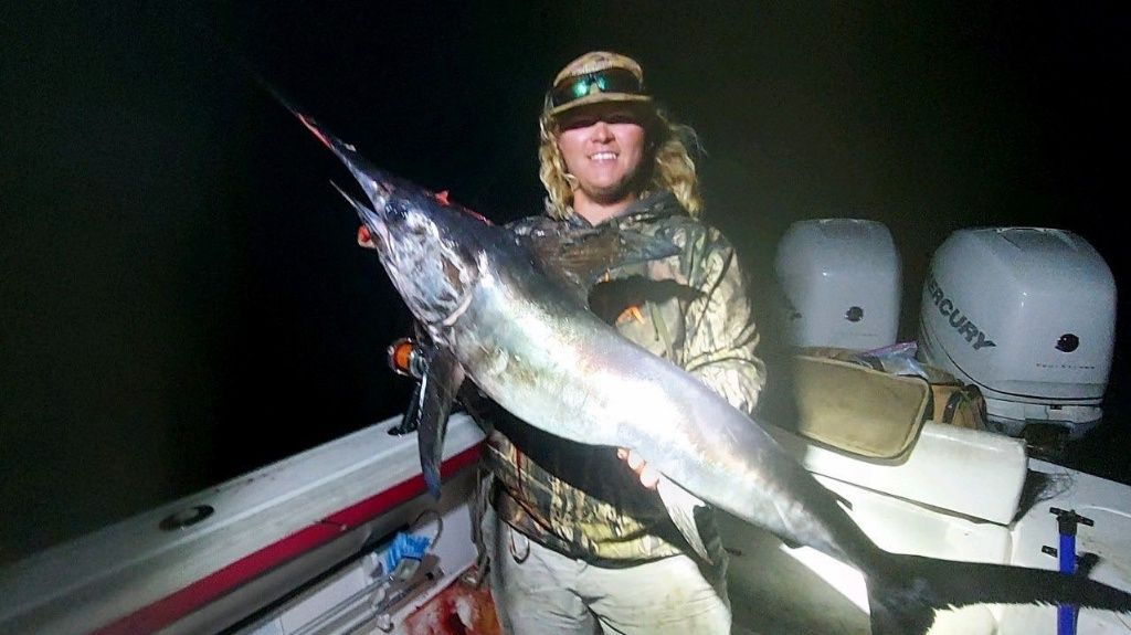 Atlantic Sailfish: Perhaps the most acrobatic fish in the ocean, sailfish are prized for their incredible aerial displays. We often find them in shallower water than other billfish, making them a more common catch on our trips. Sailfish are usually caught by trolling, but sight casting to tailing fish is the ultimate rush. While they can reach over 100 pounds, most we encounter are in the 30-80 pound range. Spring and fall are typically the best seasons for sailfish action.